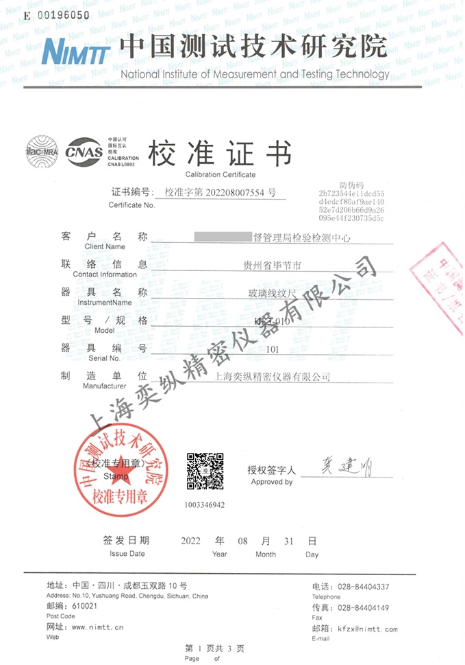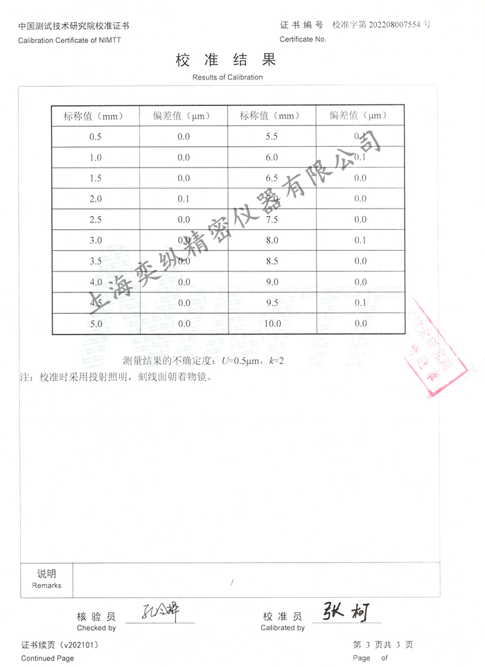 4、玻璃刻度尺:0-1mm/0.01mm,0-10mm/0.1mm,最大誤差:±2μm