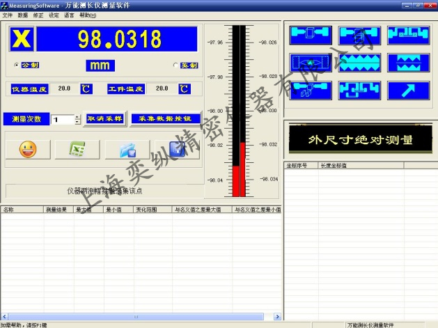 6測量準(zhǔn)確度:外尺寸絕對測量時(shí)、儀器準(zhǔn)確度: ≤(0.5+L/200)μm(20℃±0.2℃溫度下)