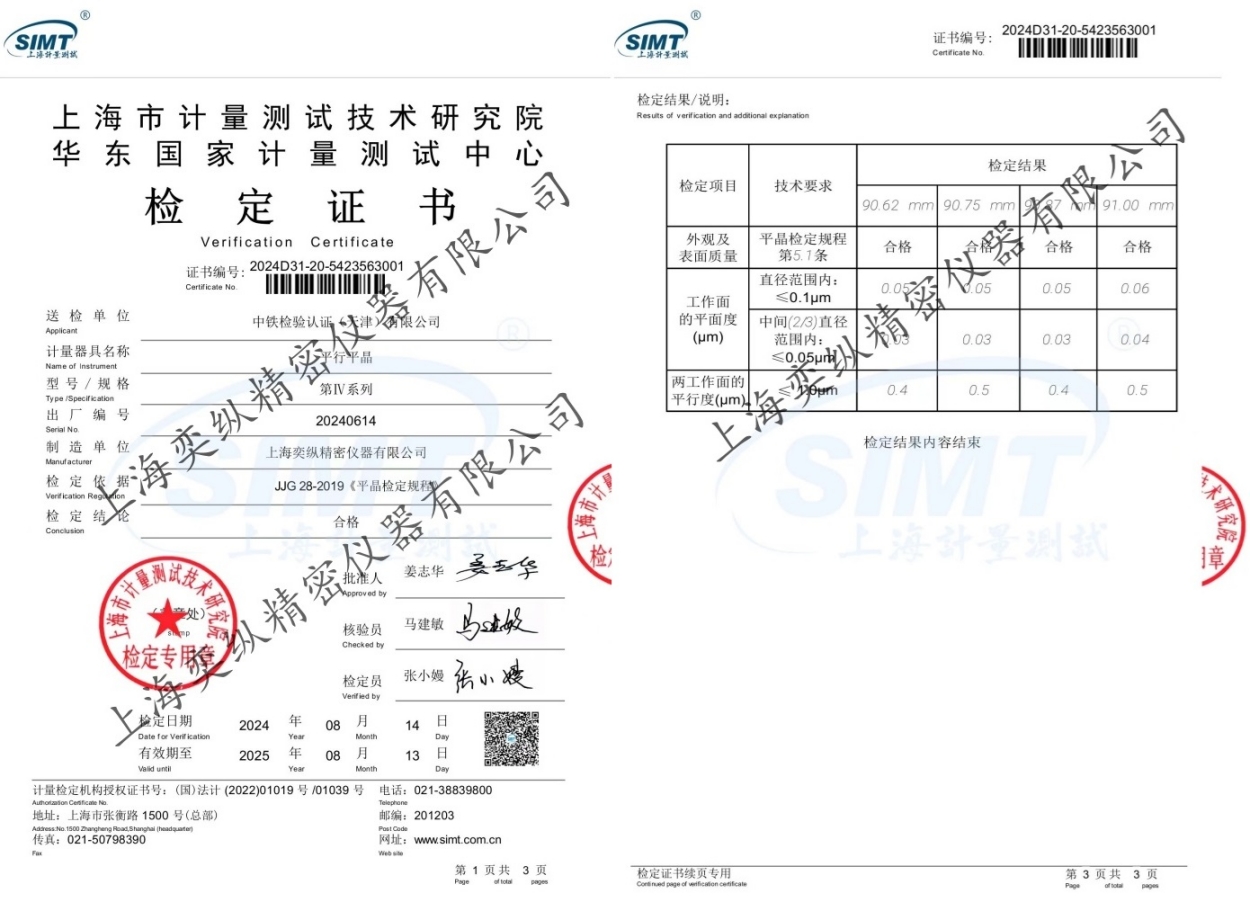 2)每組平行平晶共4塊,分四個(gè)尺寸系列組,四組共計(jì)16塊;