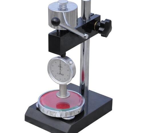 使用前應(yīng)檢查橡膠硬度計(jì)的指針在自由狀態(tài)下應(yīng)指零位。(如指針 微量偏離零位時,可以松動右上角壓緊螺絲,轉(zhuǎn)動表面,對準(zhǔn)零位)。將硬度計(jì)壓在玻璃板上時,指針應(yīng)指100度。(壓針端面與壓腳底面嚴(yán)密接觸于玻璃板上)。如不指零位和100度時,可以輕微按動壓針幾次,如仍不指零位和100度時,則不能使用,如在定荷架上使用時,可以撳動手柄,使工作臺上升,將定位銷插入工作臺下部小孔,調(diào)整使用,如仍不指100度時同樣不可使用。D型硬度計(jì)裝置在定荷架上使用時,調(diào)整工作臺平行度時壓針頂端不能直接壓在工作臺玻璃臺上,否則會壓傷工作臺玻璃臺面,必須在工作臺上放置專用量塊或平整的玻璃板后再行操作。